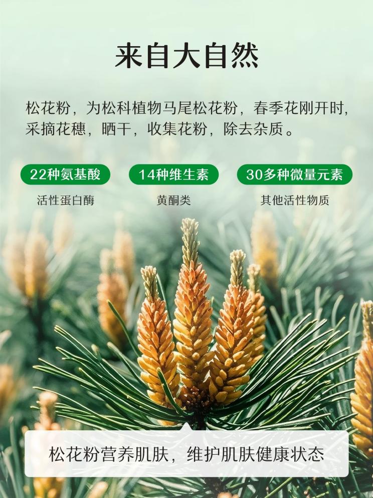 松花粉是中国医学宝库中药食兼用的花粉品种,其药食兼用的历史已逾千年。早在《本草纲目》中便记载:“松花粉,甘、温、无毒。润心肺,益气,除风止血”。多款医学典籍均可印证,松花粉有燥湿止痒,收敛止血的作用,可用于改善湿疹、皮炎等症状。而现代科技进一步揭开了松花粉的“护肤密码”:其独特的双气囊结构,既能快速吸收宝宝肌肤表面多余湿气,又能避免毛孔堵塞,同时还能发挥改善炎症的作用,为婴童肌肤护理提供了天然与科学兼具的解决方案。